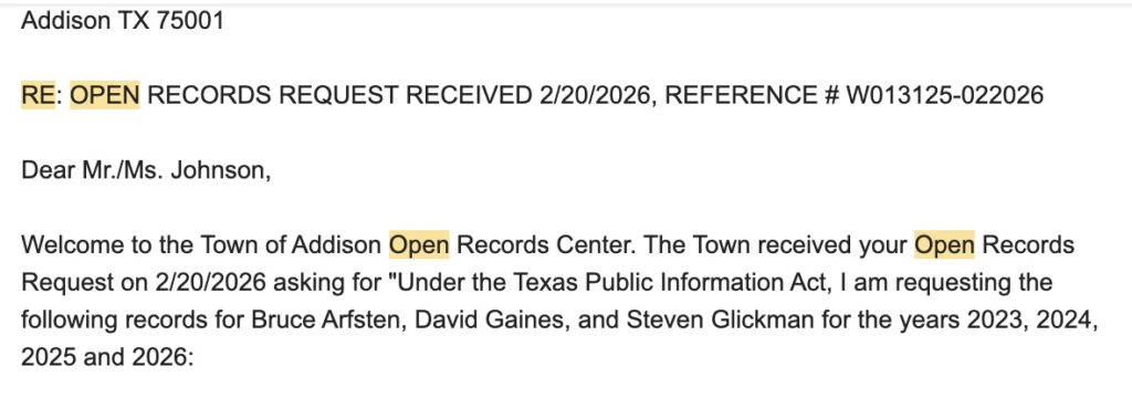 - By fighting to redact “Campaign Finance Reports” for the Mayor while simultaneously gatekeeping the “Lobbying Ledger,” the Town of Addison is signaling that the Financial Link between the politicians and the bond-dealers is their highest-priority secret.