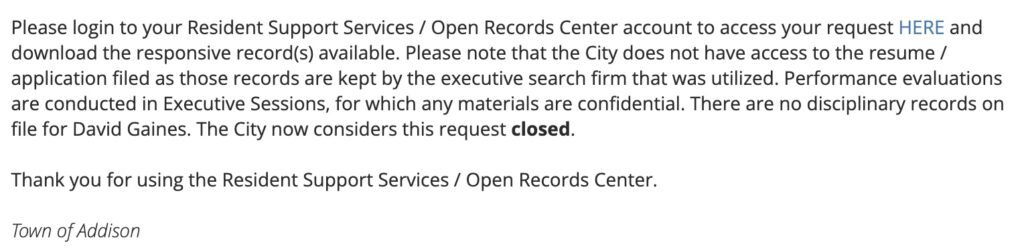 The City of Addison pays the City Manager very nearly as much as the President of the United States. There is no application or resume on file for this man. Apparently, he just walked in and got the job of total control over all residents, with no election or discussion.